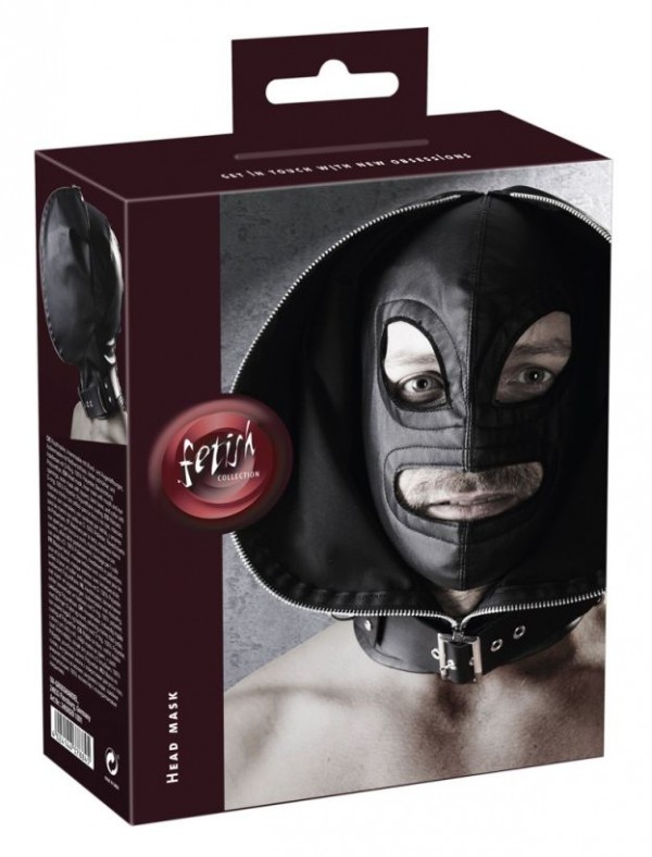Внутренняя маска имеет разрезы на уровне глаз и рта. При этом, внешняя маска просто открывается и образует своеобразный воротник! Если же, Вам необходима полнейшая депривация закрываем молнию!