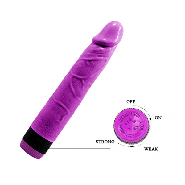 Выполнен вибратор из материала ПВХ в фиолетовом цвете. По тактильным ощущениям максимально имитирует стойкую юношескую эрекцию!